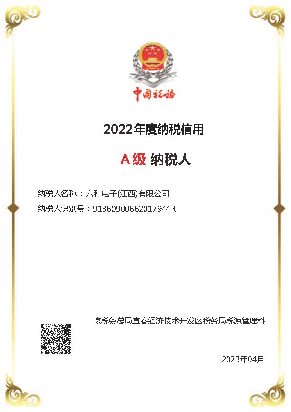 克日,银河集团官网被授予A级纳税人的声誉称呼,这是银河集团官网电子自建设以来一连第13次获得该称呼。